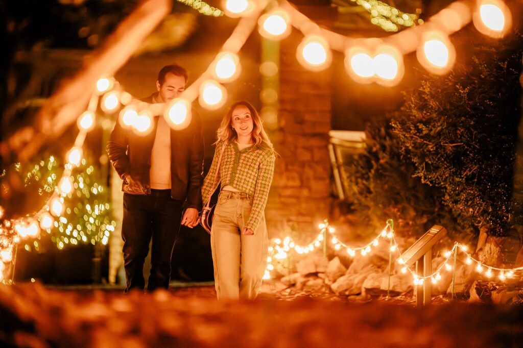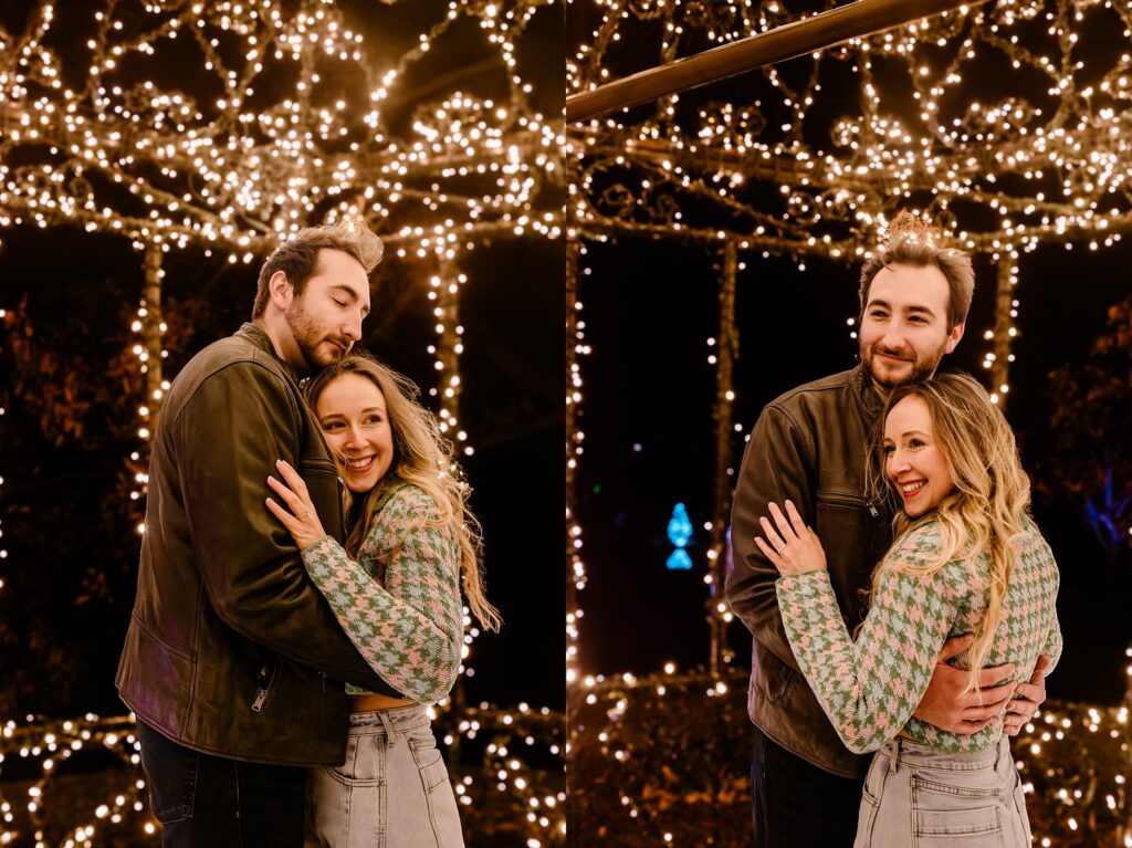 After the joyful “yes,” we spent the rest of the evening strolling through Cheekwood, creating engagement portraits beneath the holiday lights.