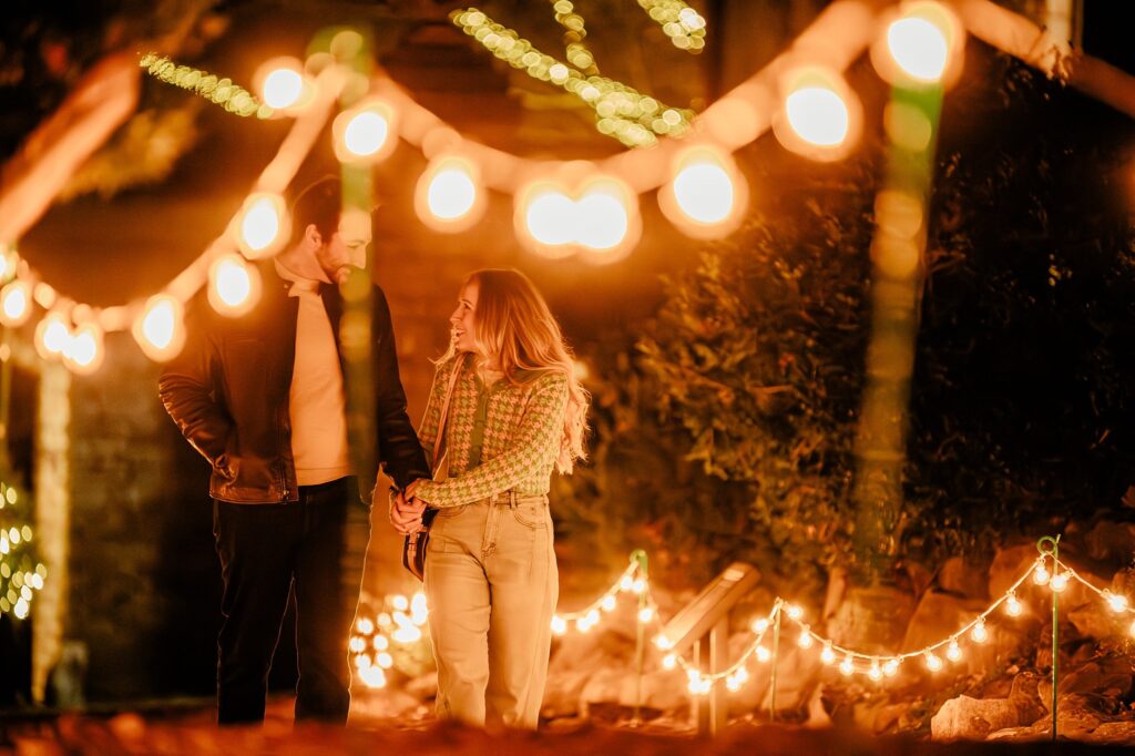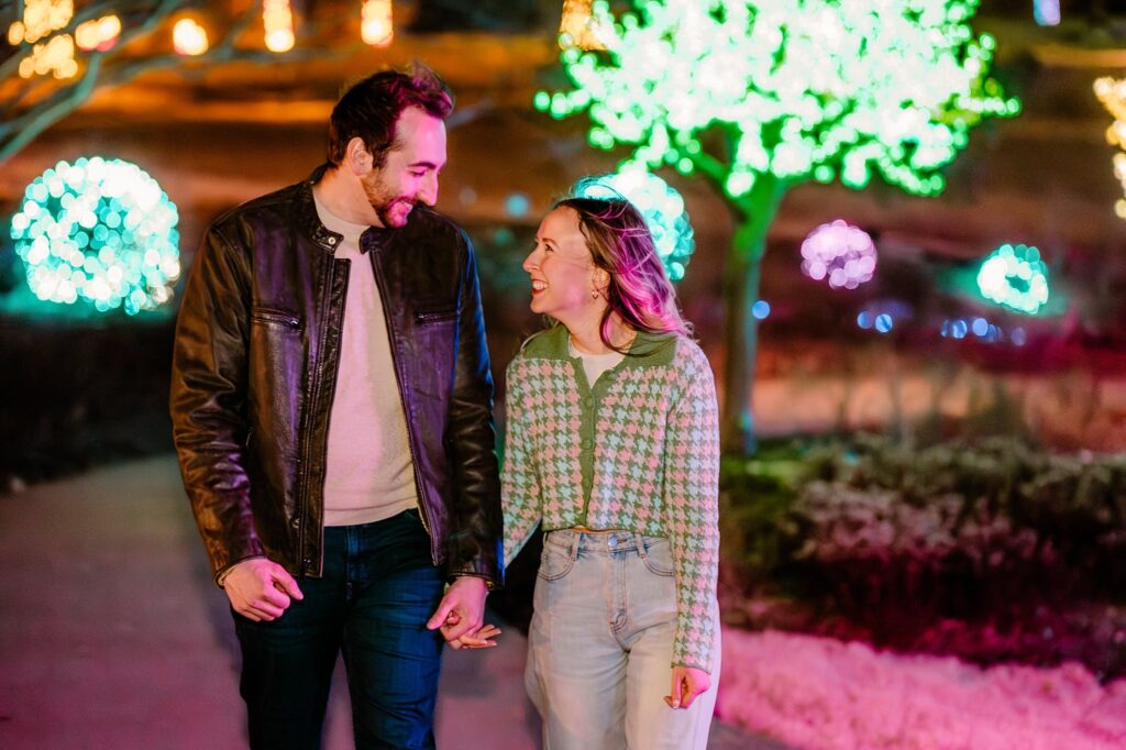 There was no rushing and no pressure. Instead, we focused on letting them soak in the moment while capturing images that felt romantic, natural, and true to who they are. The glowing lights, the quiet pathways, and the shared excitement made the perfect backdrop for portraits that I know they’ll look back on for years to come.